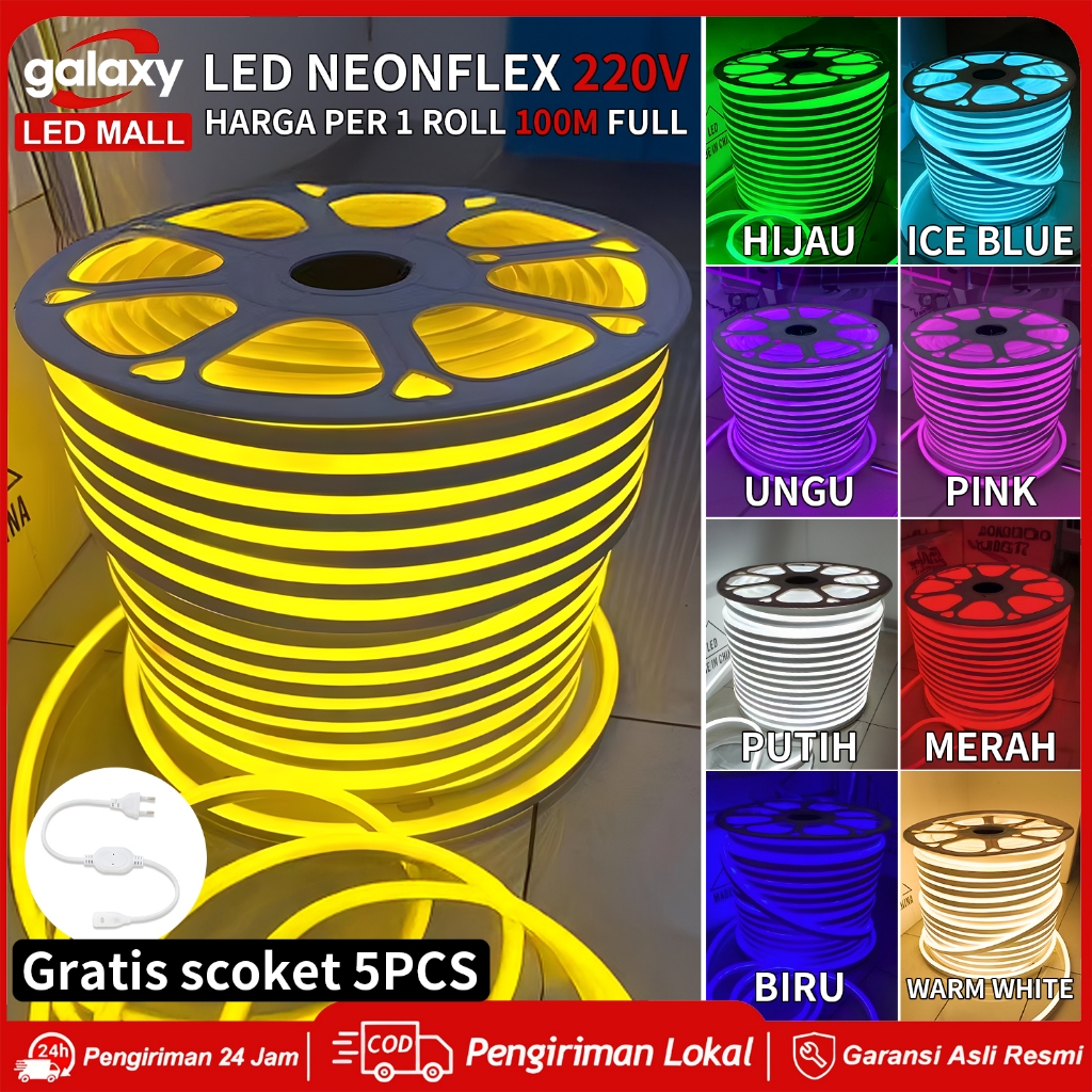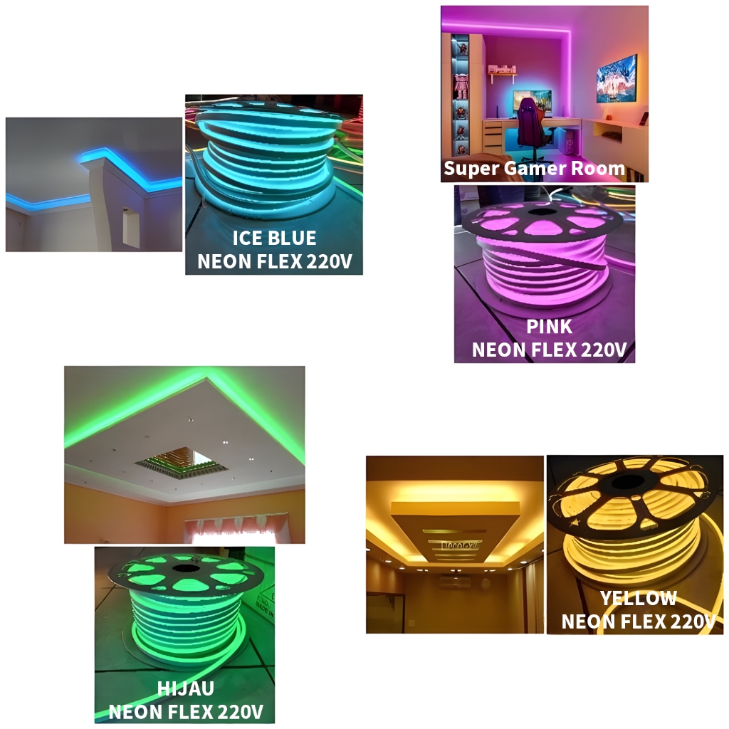 100M Lampu Neon Flex LED Flexibel Strip 220 Volt Tahan air Outdoor Indoor Dekorasi Kamar