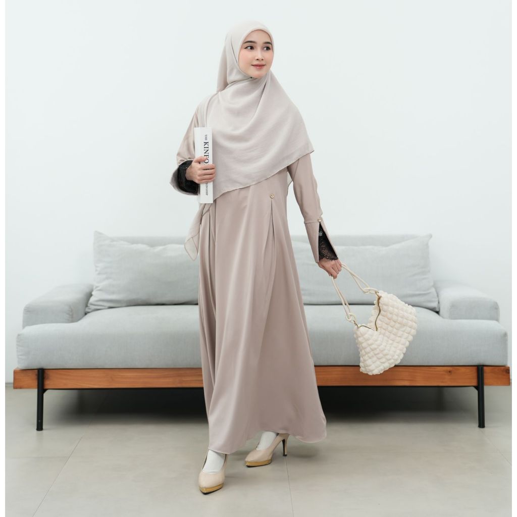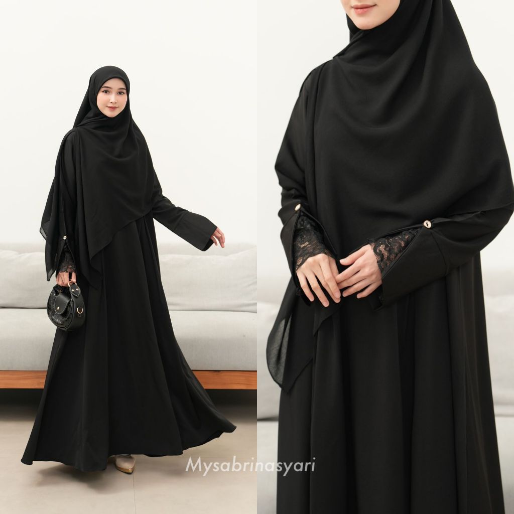 Yara Abaya By Sabrina - Gamis Abaya Muslimah Bahan Prima Lux Brukat Warna Hitam Dusty Rose