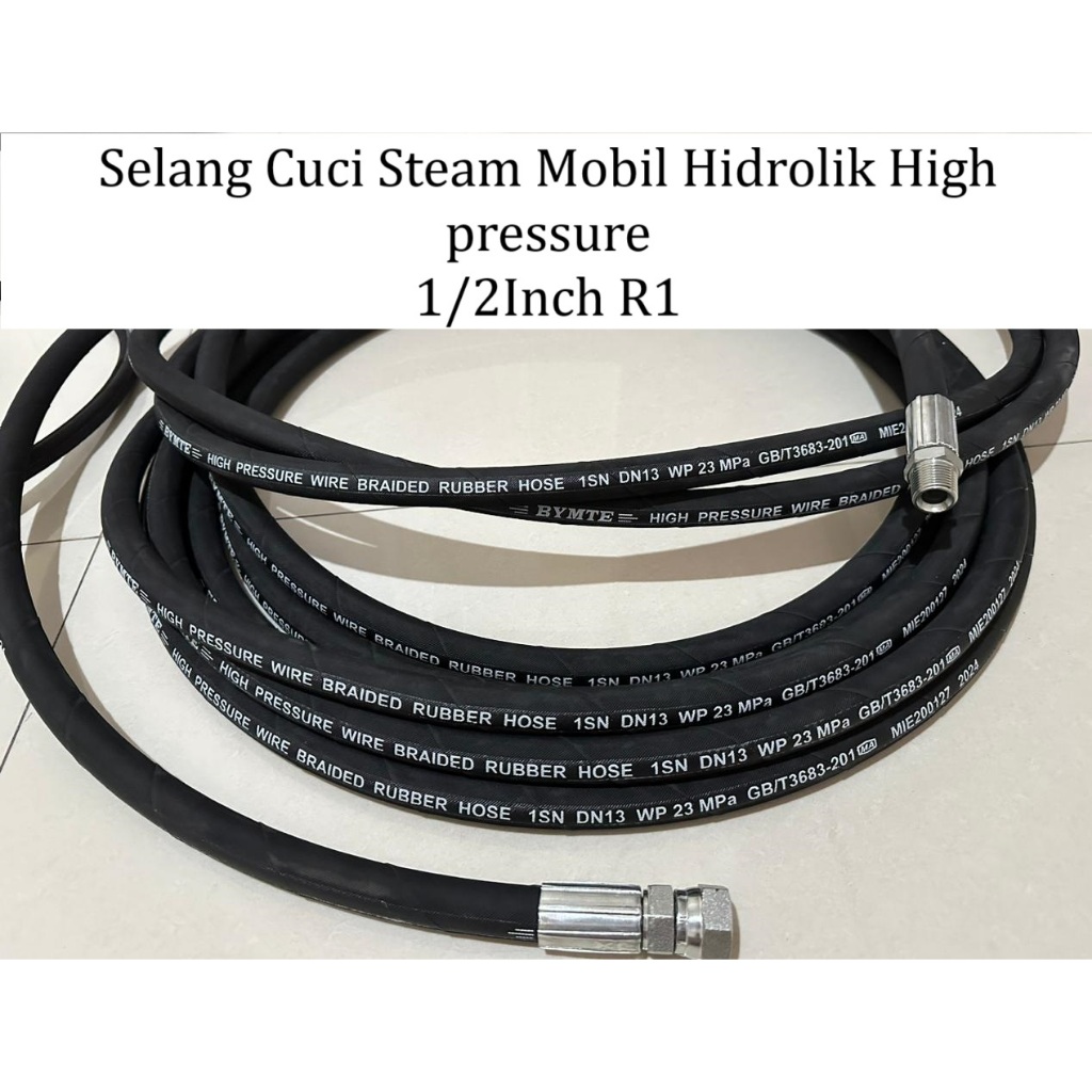 Selang Cuci Steam Mobil 1/2 Inch Hidrolik High Pressure 6 8 10 15 Meter Hydraulic Serat Kawat Baja R1