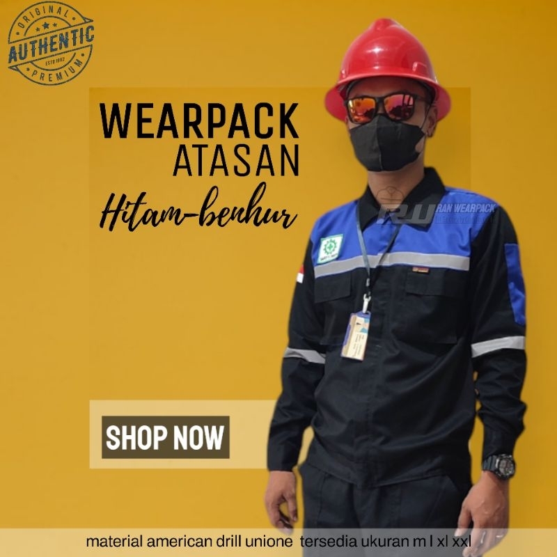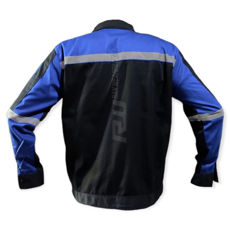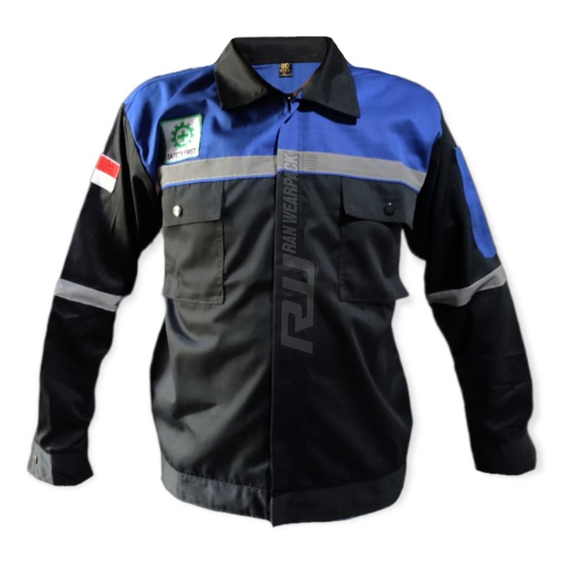 Wearpack Safety Atasan - Kemeja Safety Lengan Panjang Resleting - Wearpack Atasan Warna Hitam Kombinasi Biru Benhur - Baju Proyek