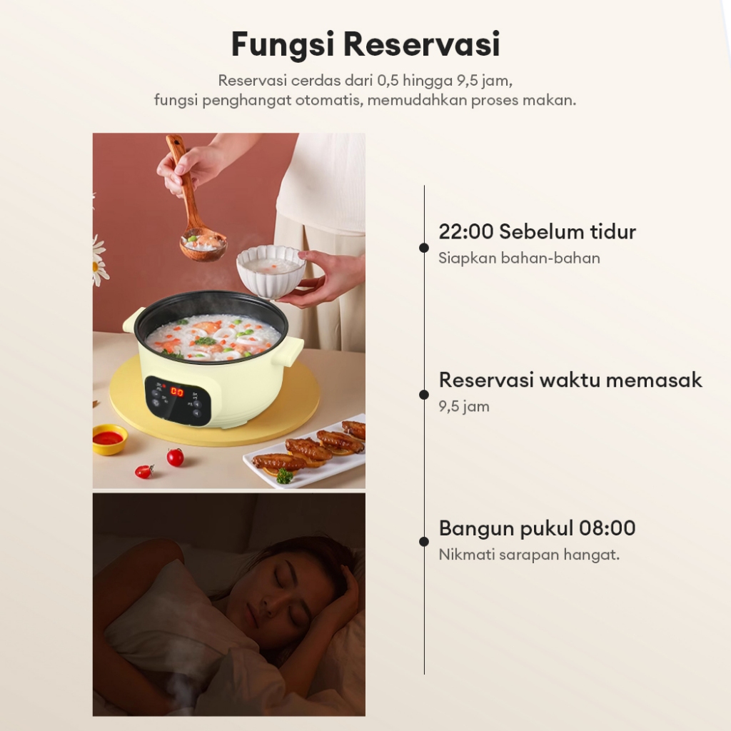 TKTKT 800W panci listrik multifungsi 7 mode panci listrik serbaguna 2.5L kukusan listrik Penyesuaian gigi panci listrik anti lengket panci serba guna Fungsi reservasi
