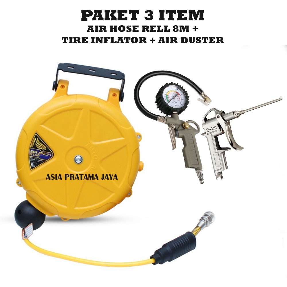 Paket Lengkap Air Hose Reel 8M / Selang Udara Kompresor Gulung Seperti Tekiro Selang Tarik