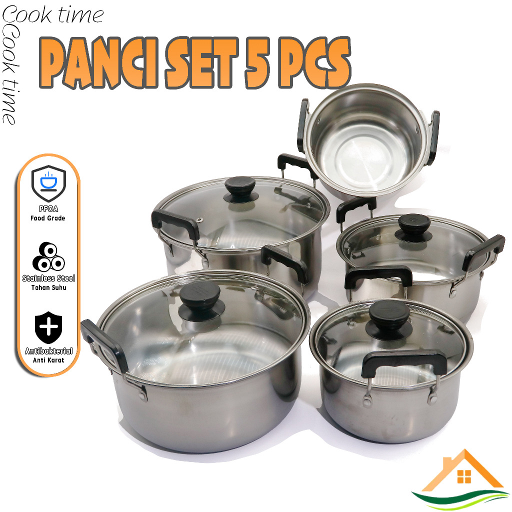 (CT)Panci set isi 5 pcs / panci steamer set 5 susun tutup stenlis / Panci Set 5 Susun Stainless