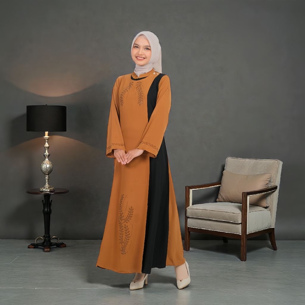 Gamis Hawra Luxury Jetblack Premium Kombinasi – Abaya Mewah Desain Elegan dan Eksklusif untuk Acara Formal
