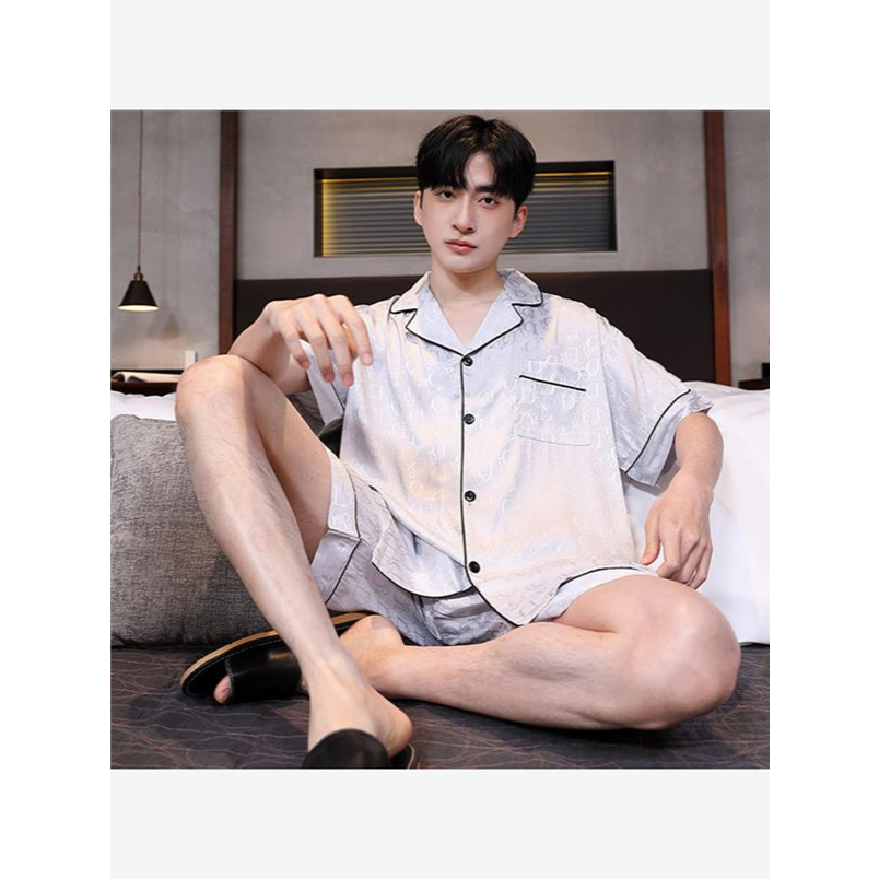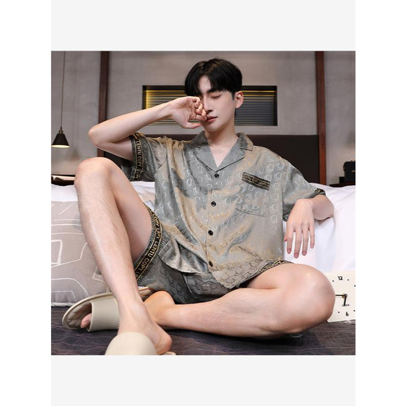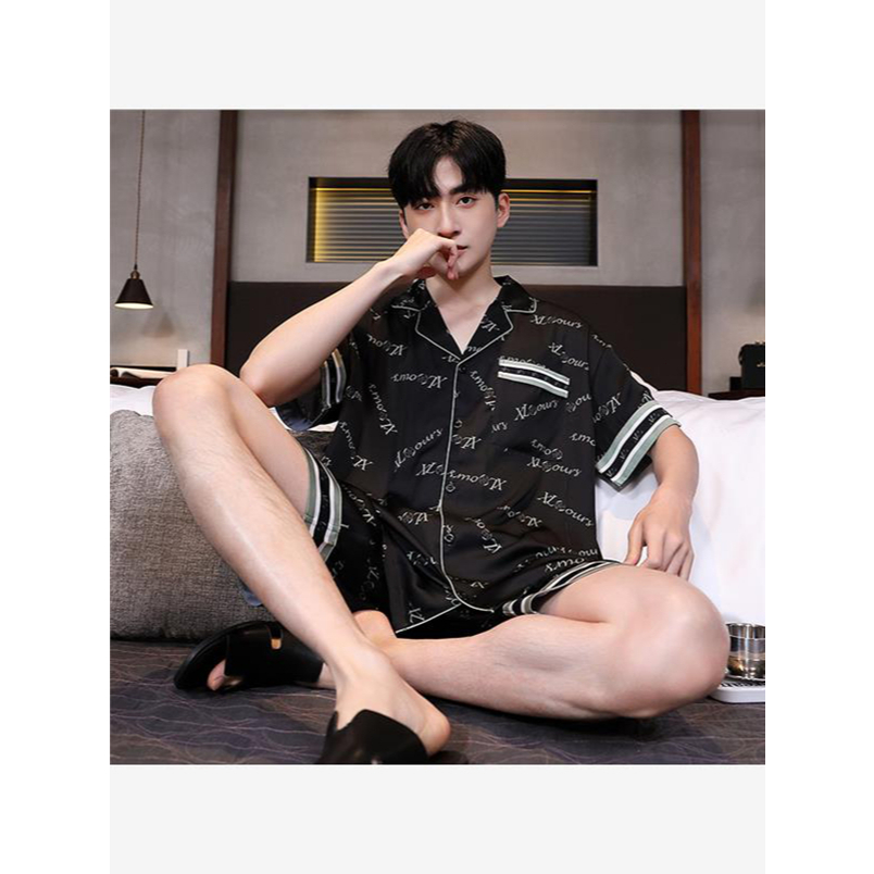 Piyama Pria Musim Panas Lengan Pendek 2025 Model Terbaru, Remaja, Set Baju Rumah, Bisa Dipakai Keluar