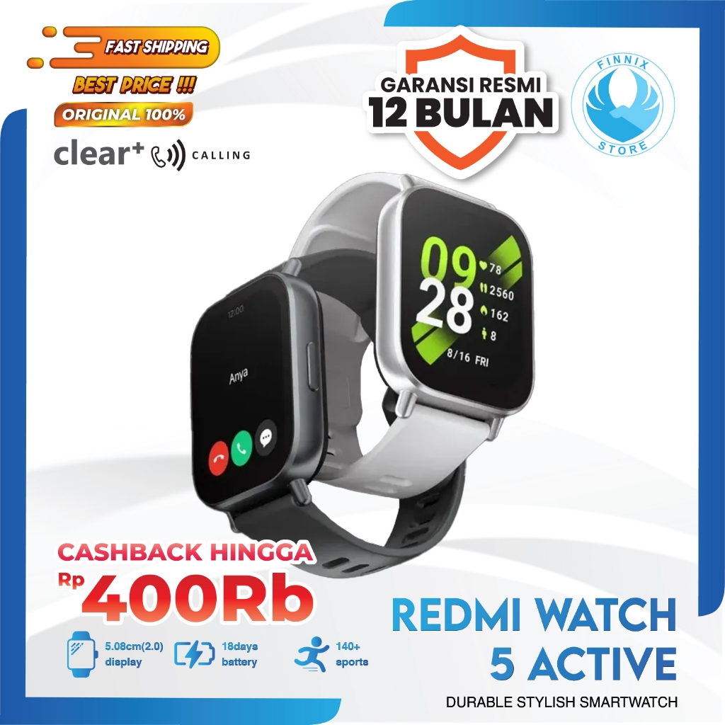 Xiaomi Mi Redmi Watch 5 Active Smartwatch Bluetooth Call 5ATM 100 Mode Olahraga SPO2 - Garansi Resmi