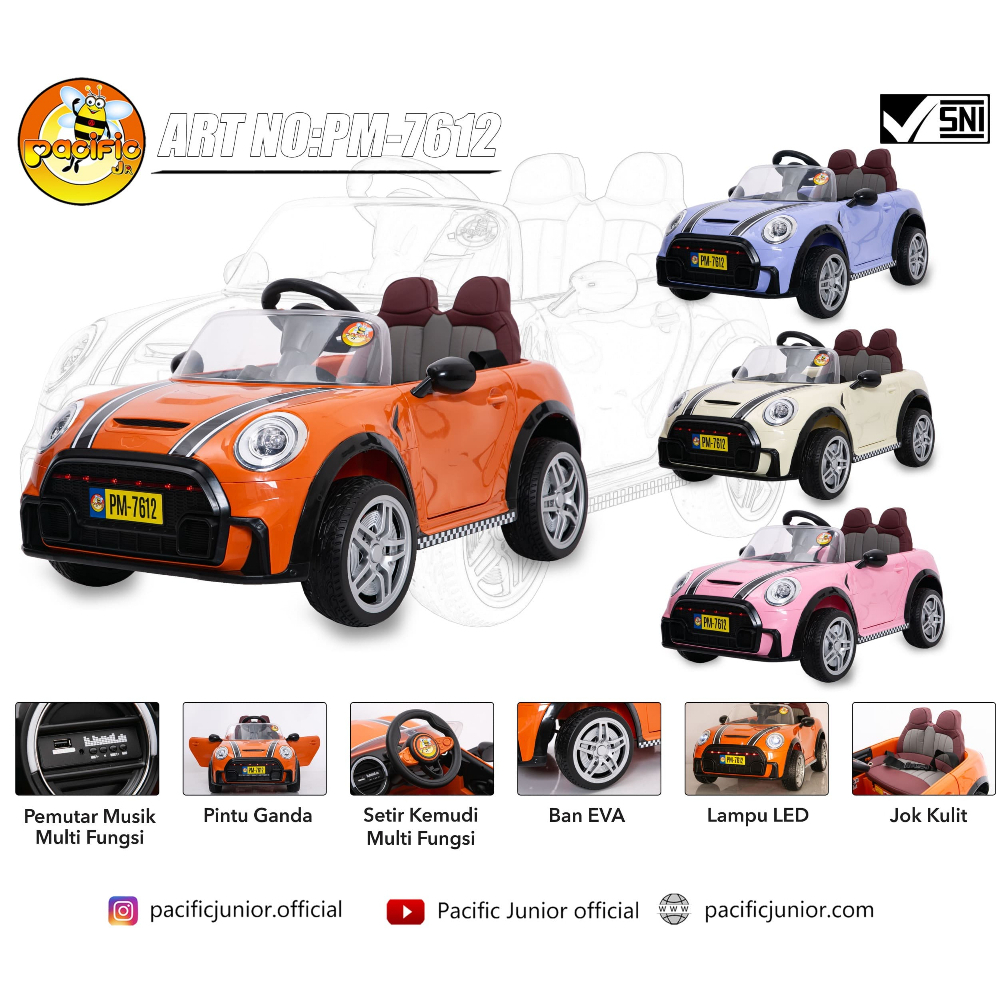 Mainan Mobil Aki Anak Mini Cooper Style PM 7612+ Ban EVA Pacific