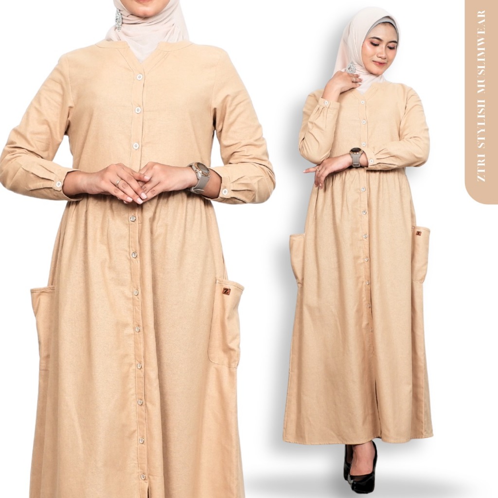 𝗭𝘁𝗿𝗶 - Long Dress Wanita Dewasa Motif Polos Outfit Muslim Kekinian Gamis Wanita Dewasa 2025
