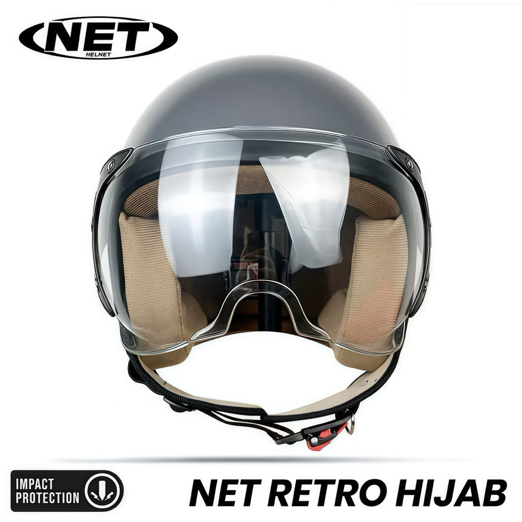 NET - Helm Bogo Retro Hijab Dewasa Kaca Pilot SNI Motorcycle Cappucino