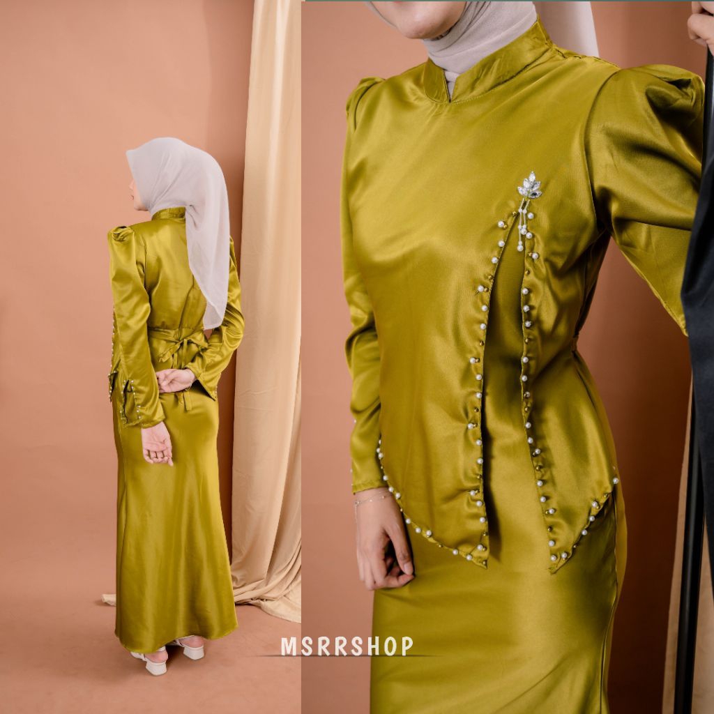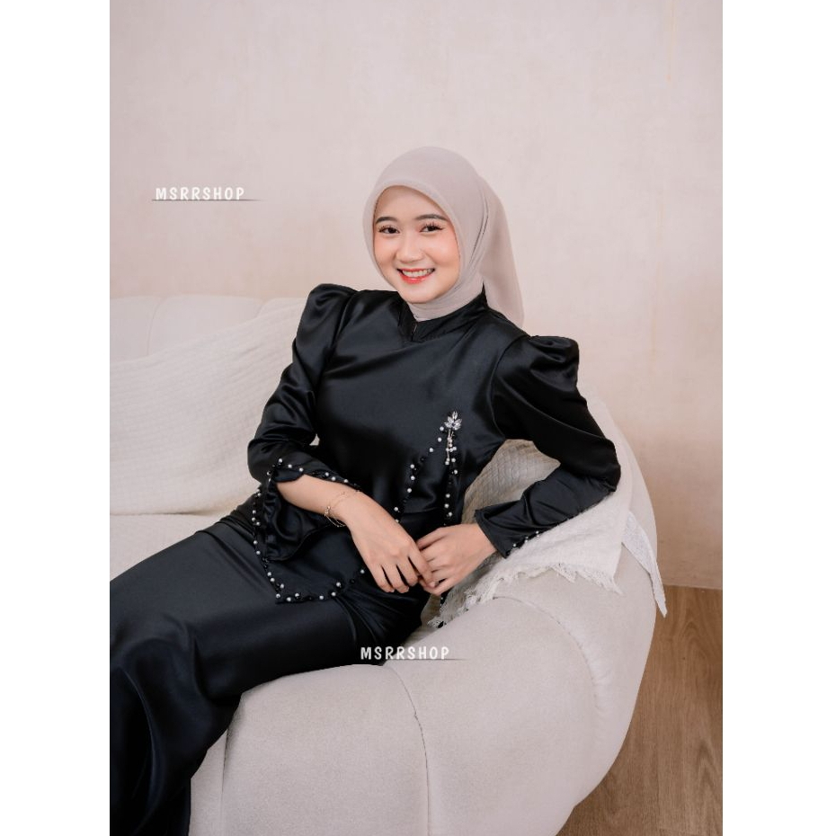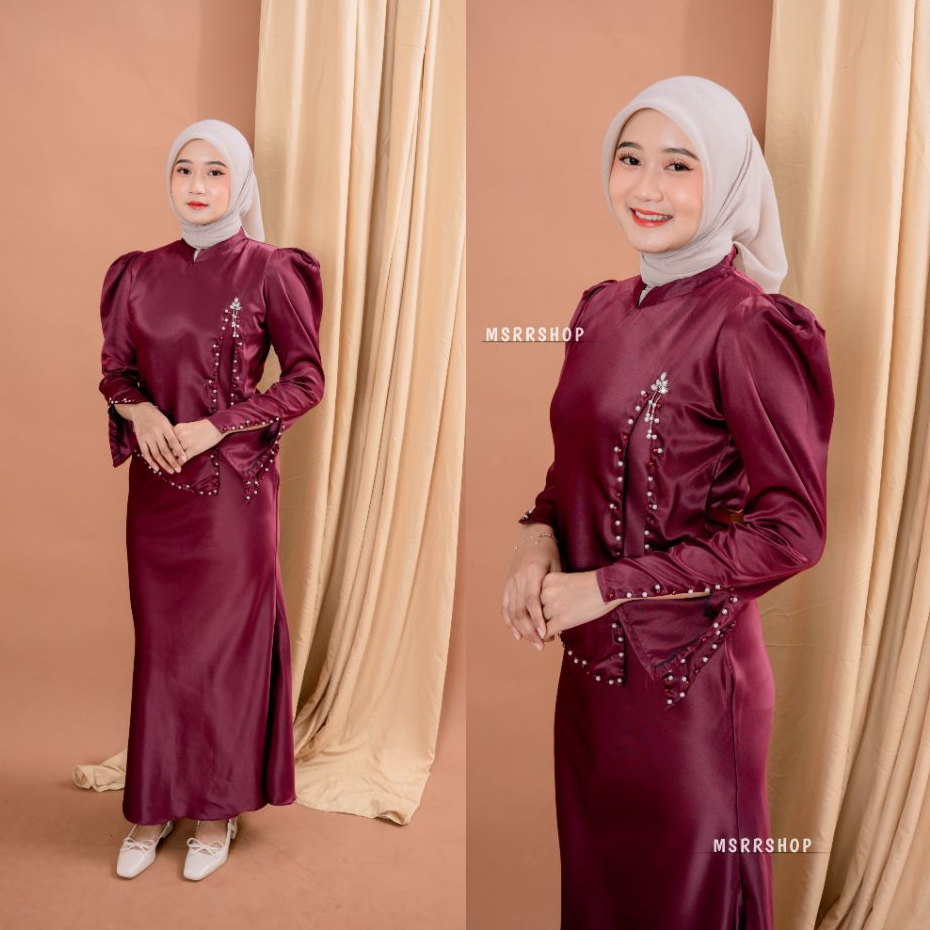 Aveline Dress Satin Silk Premium Wanita Kondangan Muslim Body Fit Gamis Simpel Elegan Full Payet