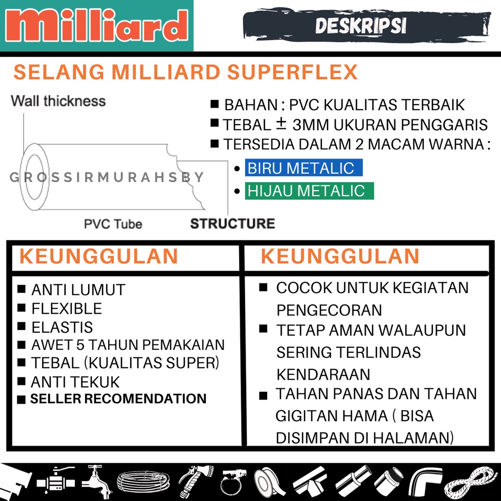 Selang Air Milliard Superflex 5/8 Inchi ( 50 Meter / 100 Meter ) Metalik