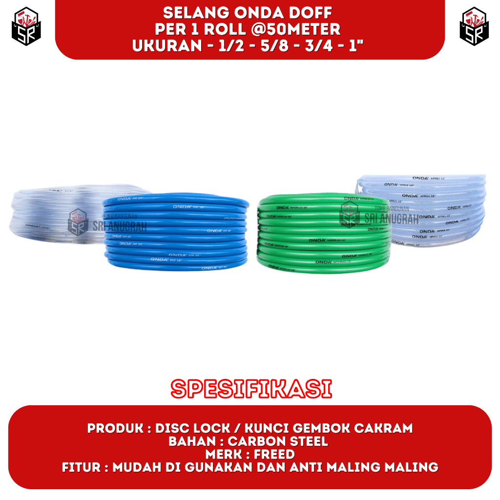 Selang Air Onda Doff 1 Roll Isi 50 Meter Tebal Anti Getas Ukuran Presisi