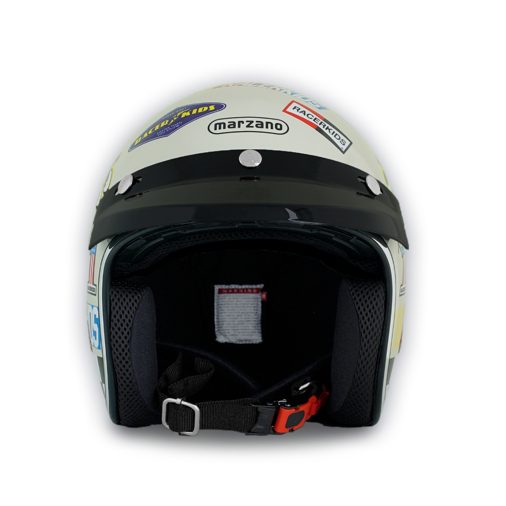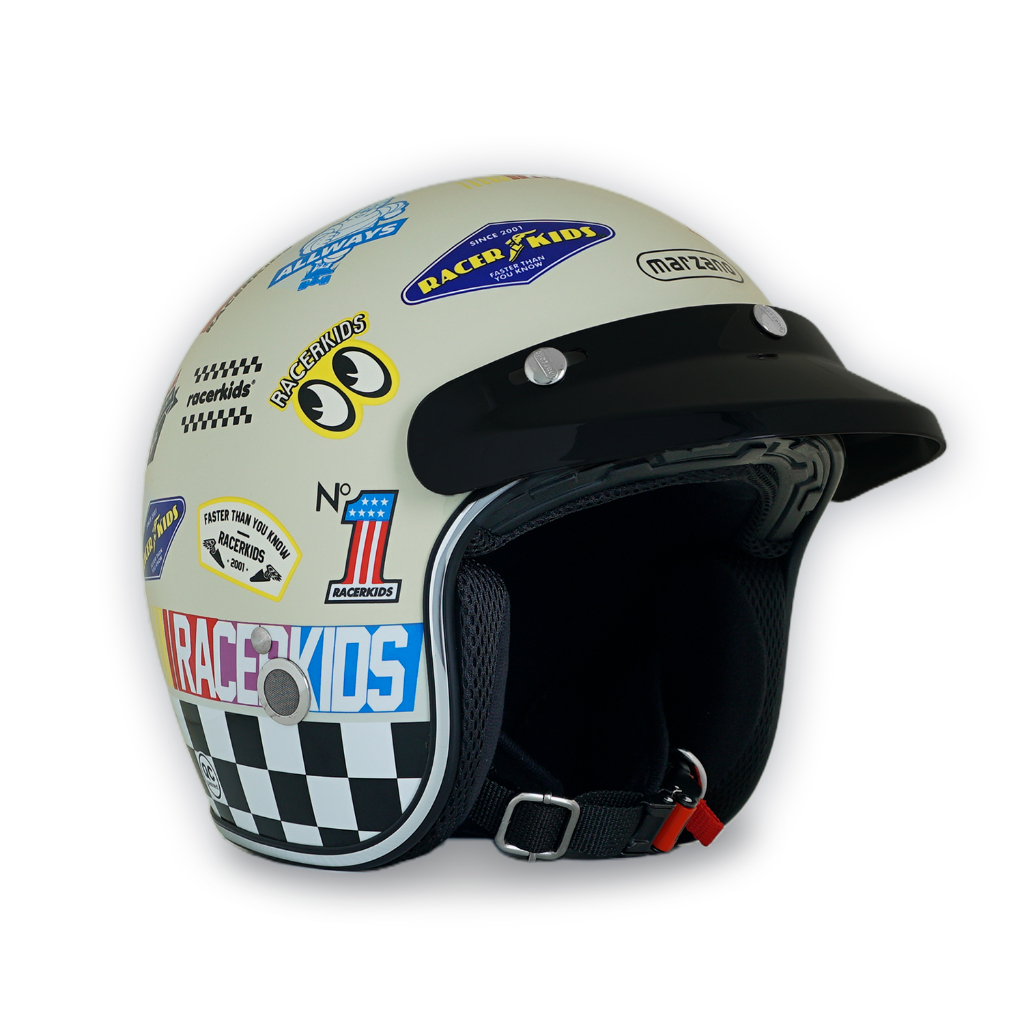 Marzano X Racerkids Helm Retro Bogo Half Face Cream Glossy Size S-XL Berstandar SNI