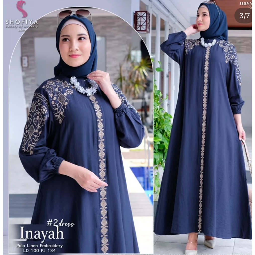 GAMIS KONDANGAN MEWAH ELEGAN UKURAN M L XL XXL XXXL BAHAN POLO LINEN MIX BORDIR BUSUI DRESS PESTA ELEGANT