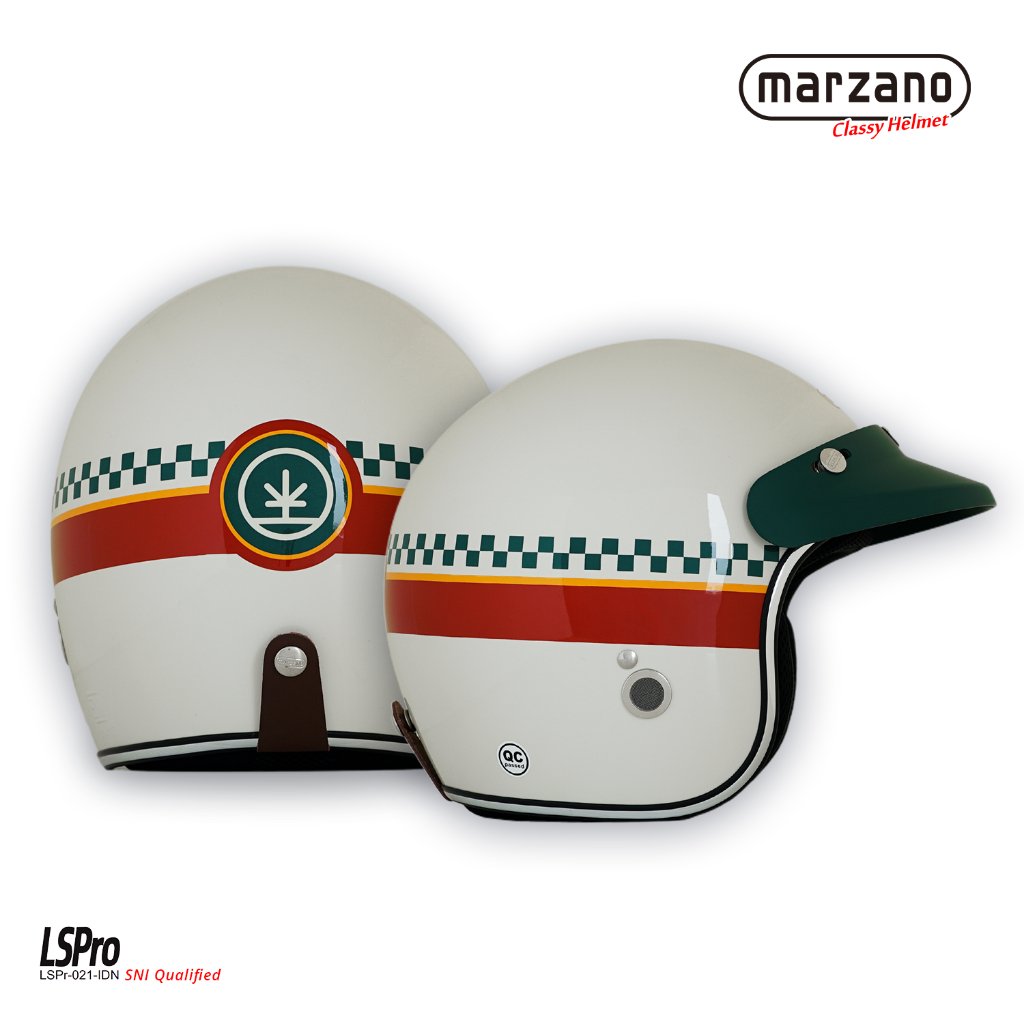 Marzano X LGN Helm Retro Bogo Half Face Cream Ver 2 Glossy Size S-XL Berstandar SNI