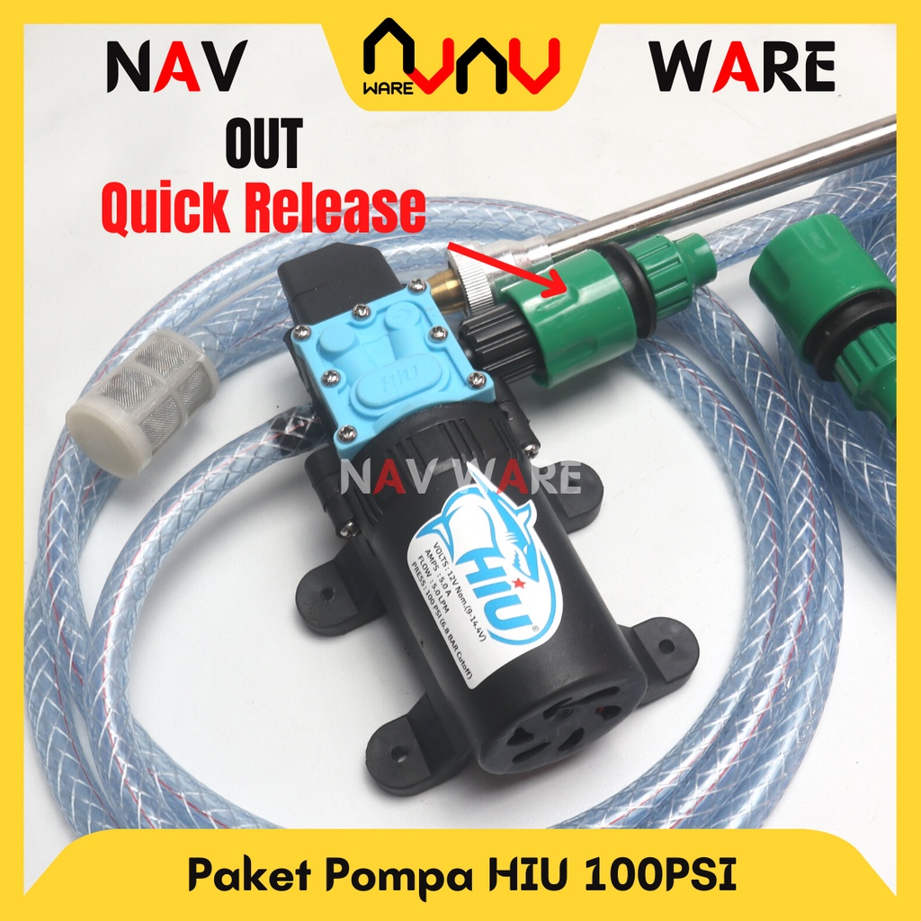 Paket Lengkap Hiu 100Psi Pompa Air Dc 12V Selang Out Quick Release Alat Cuci Motor Mobil High Pressure Steam Sprayer Gun