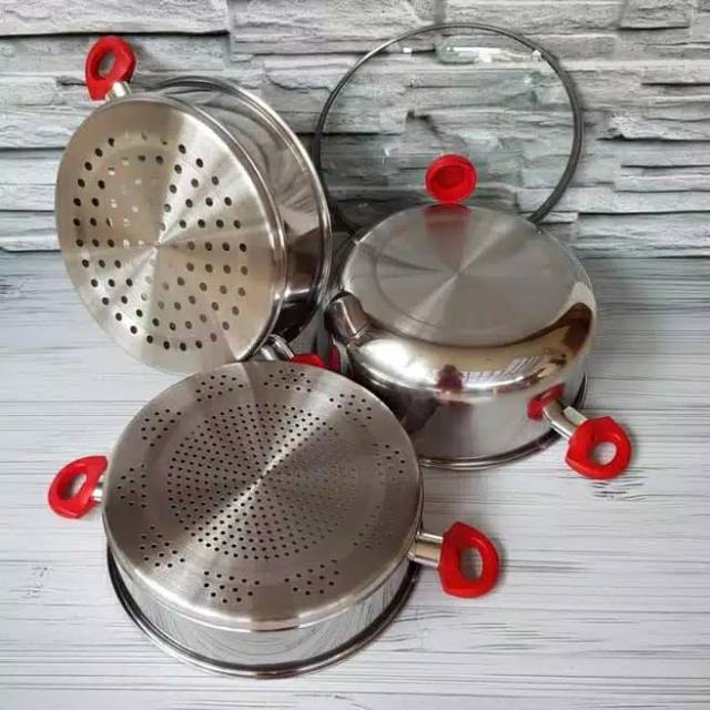 Supra steamer 32cm / Panci kukus 3 susun Diameter 32cm stainless
