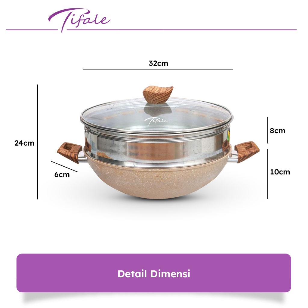 Tifale [2IN1] Wokpan + Glass Lid Panci Kukus 32CM Anti Lengket Dandang Steamer Non Stick