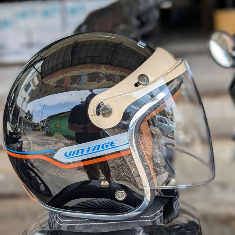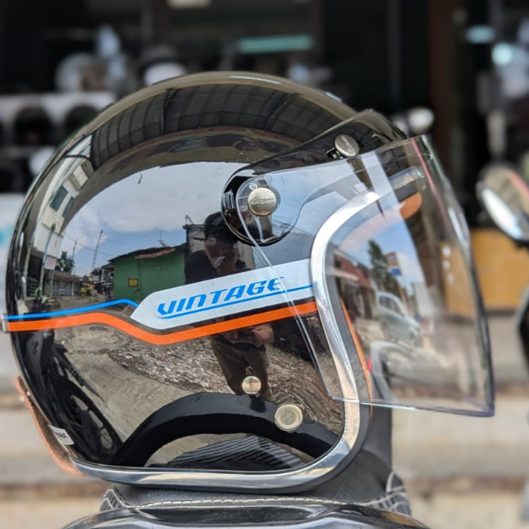 HELM BOGO NIMO SERIES VINTAGE PREMIUM KACA FREAM HELM ABS BLACK GLOSSY