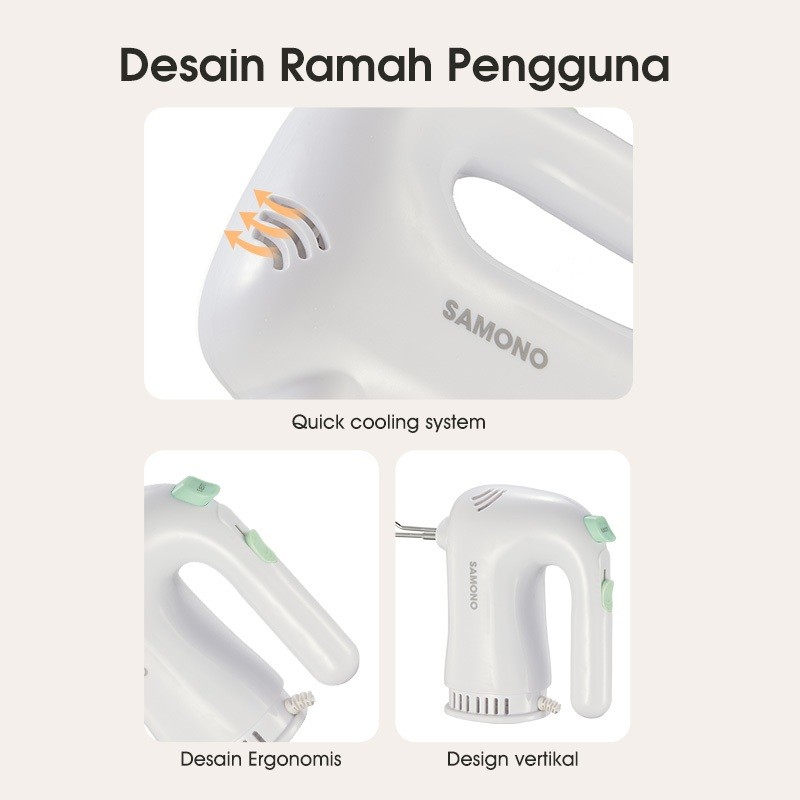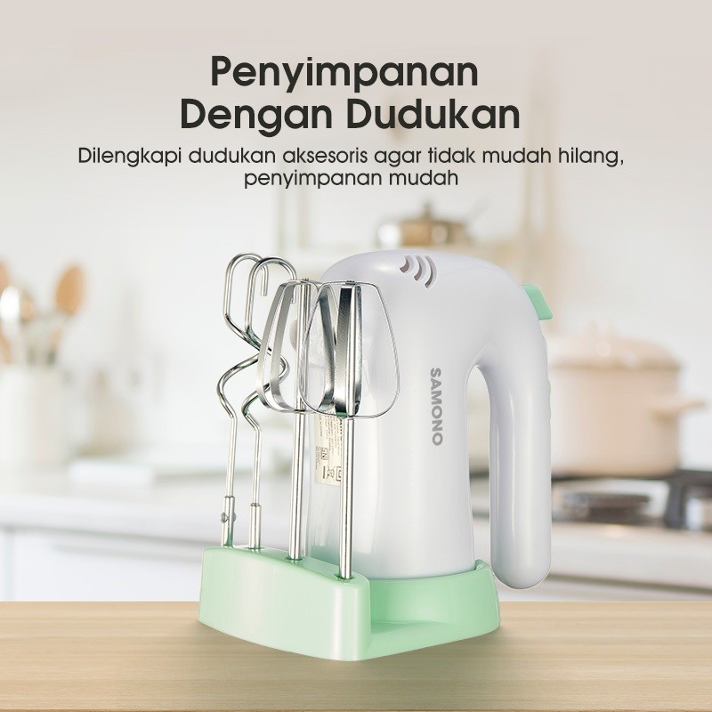 SAMONO Hand Mixer Hemat Daya 200 Watt Dengan Dudukan Penyimpanan 5 Level Kecepatan SW-THMB200 Garansi 1 Tahun