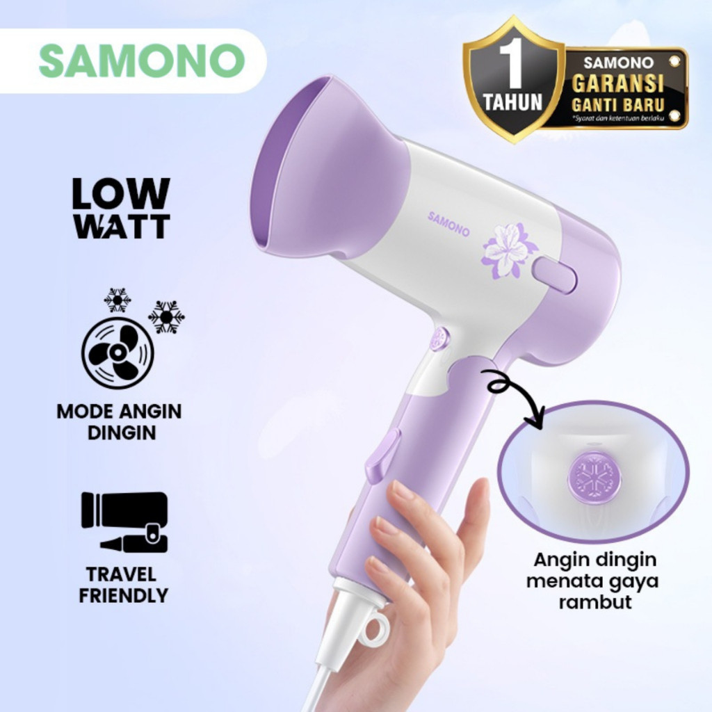 [LIVE STREAM PROMO] SAMONO Hairdryer HD10 Low Watt Dapat Dilipat Ringan Tidak Merusak Rambut