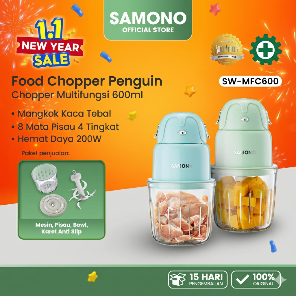 SAMONO Food Chopper 600ml Serbaguna coper daging dan bumbu chopper daging dan bumbu coper bumbu serbaguna samono official store samono chopper chopper mpasi bayi MFC600