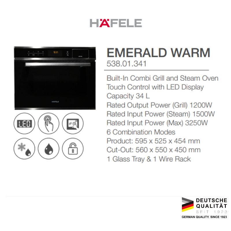 Hafele Emerald Oven Tanam Grill & Steam 34 Liter Touch Screen Hitam - Built-in Electric Oven Black