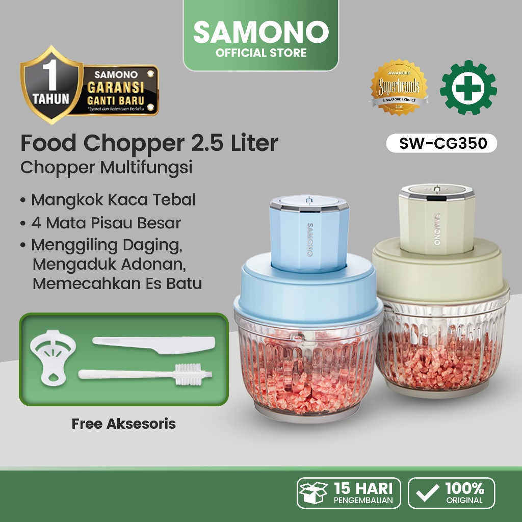 SAMONO Chopper Multifungsi 2.5 Liter Food Processor Daya Kuat Penggiling Daging Penghalus Makanan Garansi 1 Tahun SW-CG350 ORIGINAL