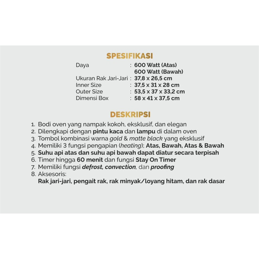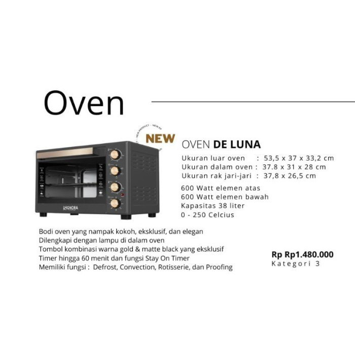 Signora Oven De Luna Kapasitas 38 Liter + Hadiah