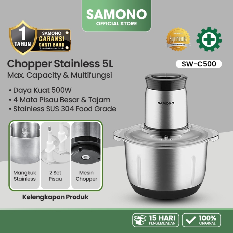 SAMONO Food Chopper 2 in 1 Stainless Steel 304 Kapasitas 5L Garansi Resmi 1 Tahun SW-C500