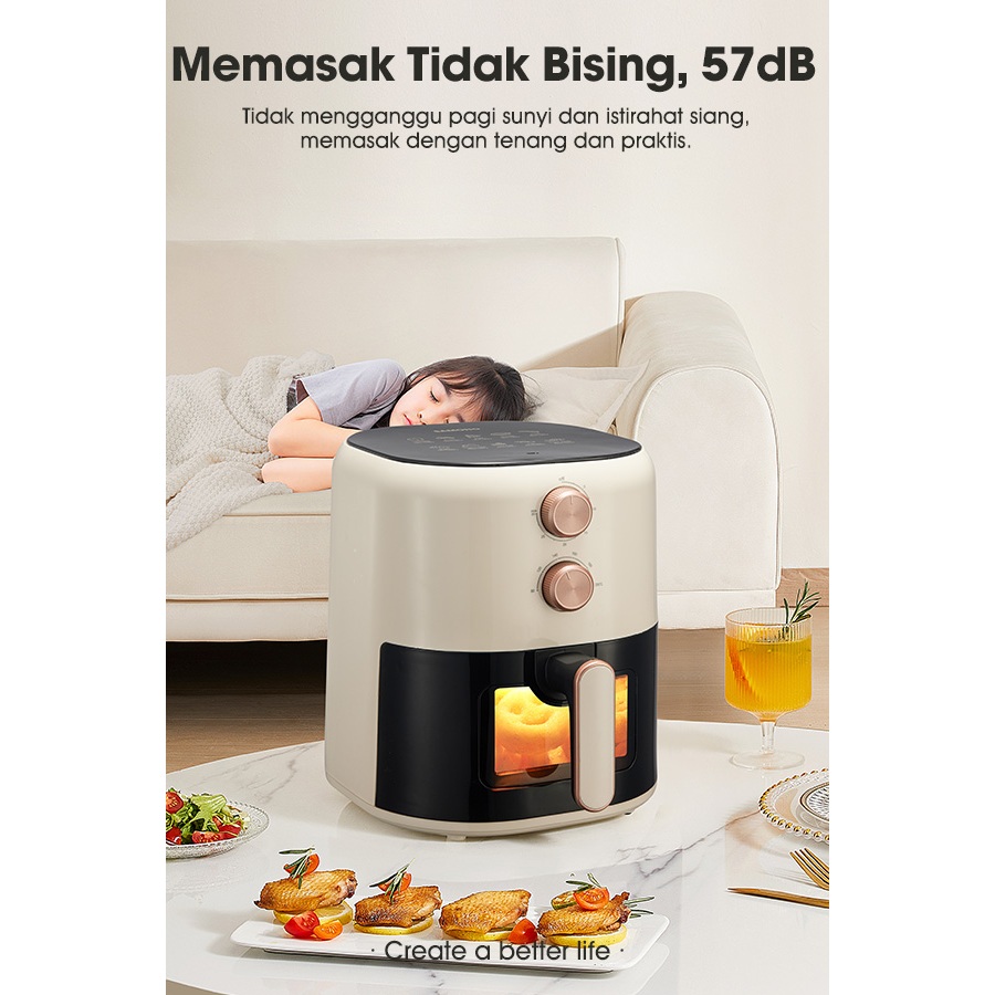 SAMONO Aesthetic Transparan Air Fryer 5L 700W Low Watt SNI Hemat Listrik Mesin Penggoreng Tanpa Minyak SW-AFW50