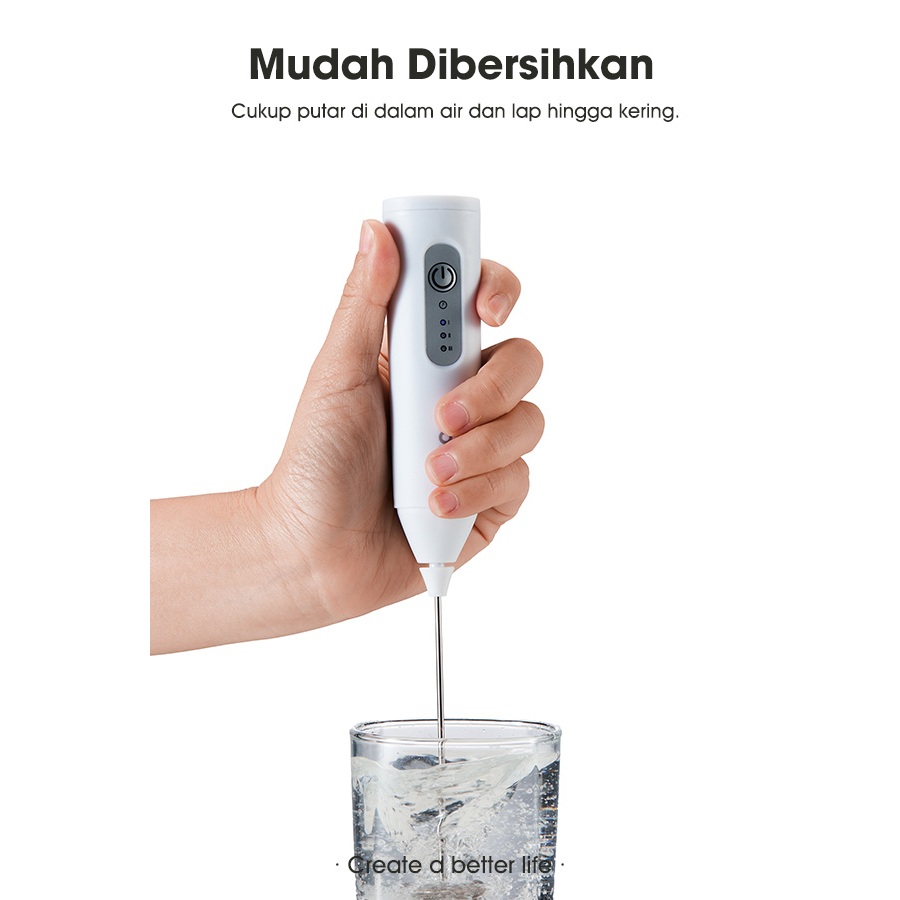 SAMONO Wireless Milk Frother Portable 3 Kecepatan 1000 RPM Baterai 400MAh 3 Speed Pembuih Susu Matcha Kopi Pembuat Buih dalam 10 Detik Rechargeable Type C SW-MFB20 - Garansi 1 Tahun
