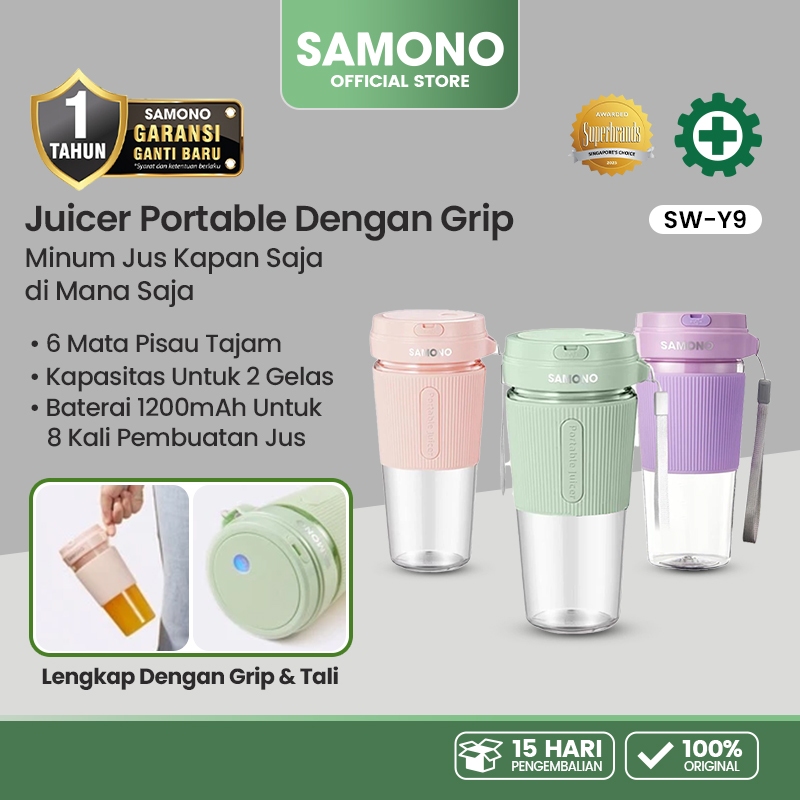 SAMONO 350ML Juicer Portable 6 Mata Pisau Hand Grip Karet 1200mAh Food Grade SW-Y9 3 Warna