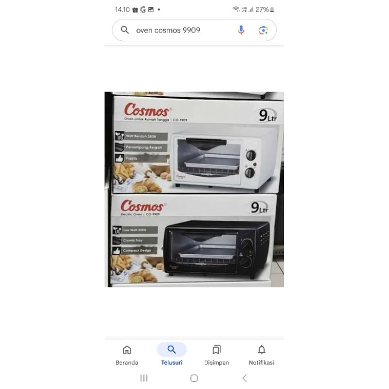 Oven Cosmos CO-9909 Kecil Pemanggang Mini Kue Kering Roti CO 9909 9 Liter 9L