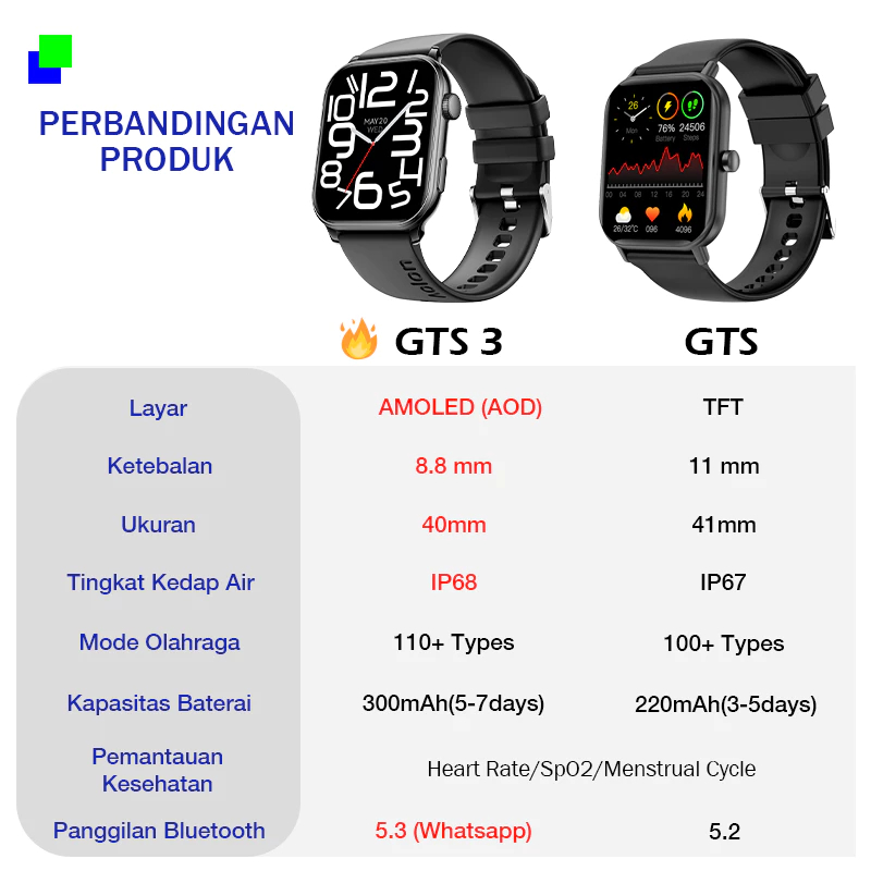 [NEW] Aolon GTS 3 Jam Smartwatch Ultra-thin 40mm 2.5D Amoled Display 100+ Jenis Olahraga Panggilan Bluetooth VS Redmi Watch 5Active