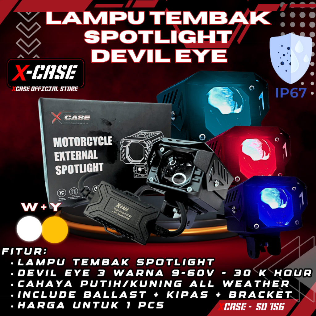 X-Case Lampu Tembak Biled Plus Devil Eye 3 Pilihan Warna External Spotlight Universal SD 156