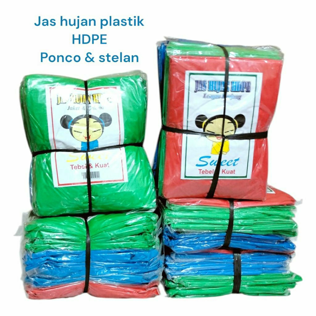 balaikaoskaki paket 12 pcs) jas hujan plastik HDPE stelan dan Ponco ukuran dewasa jumbo tebal