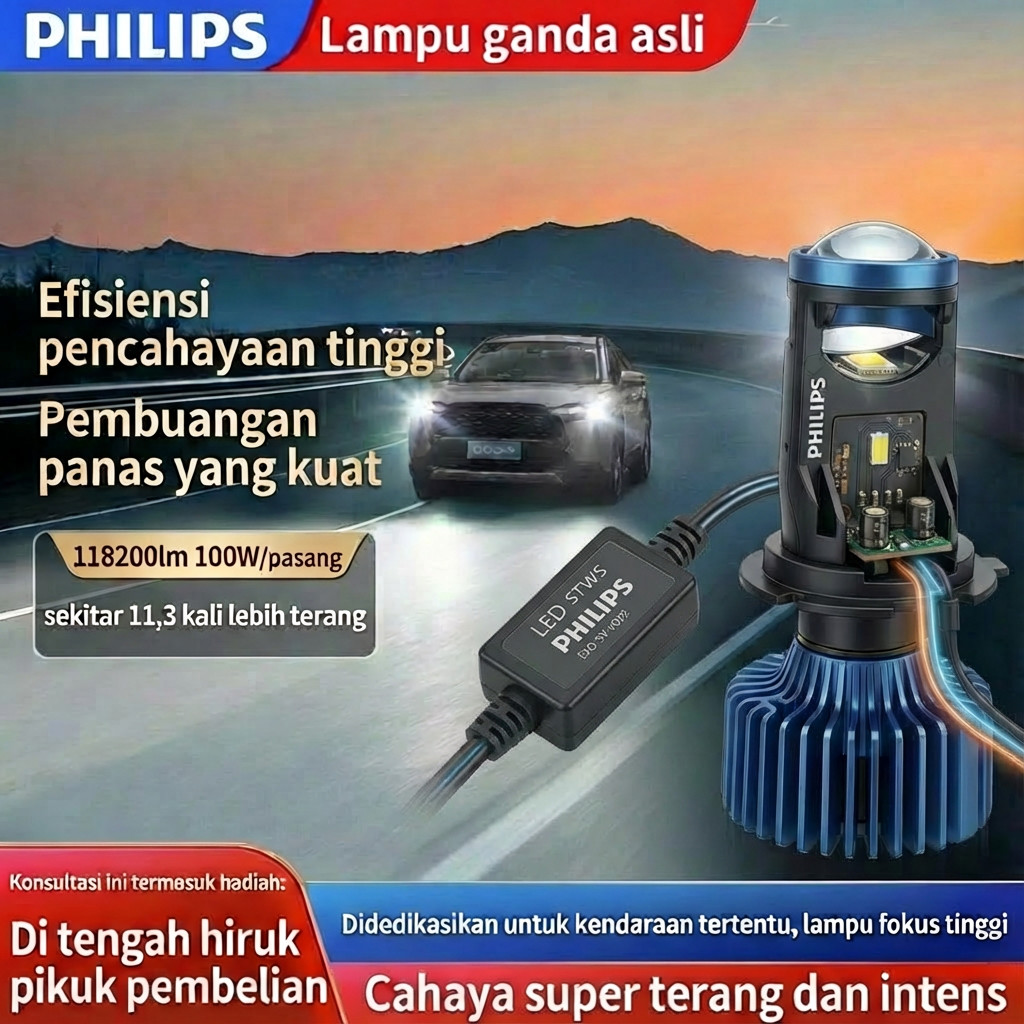 Lampu Depan Philips H4 Y7D/Umur Panjang/Lampu Depan Mobil dan Motor Super Terang/Dengan Kipas Pendingin Asli