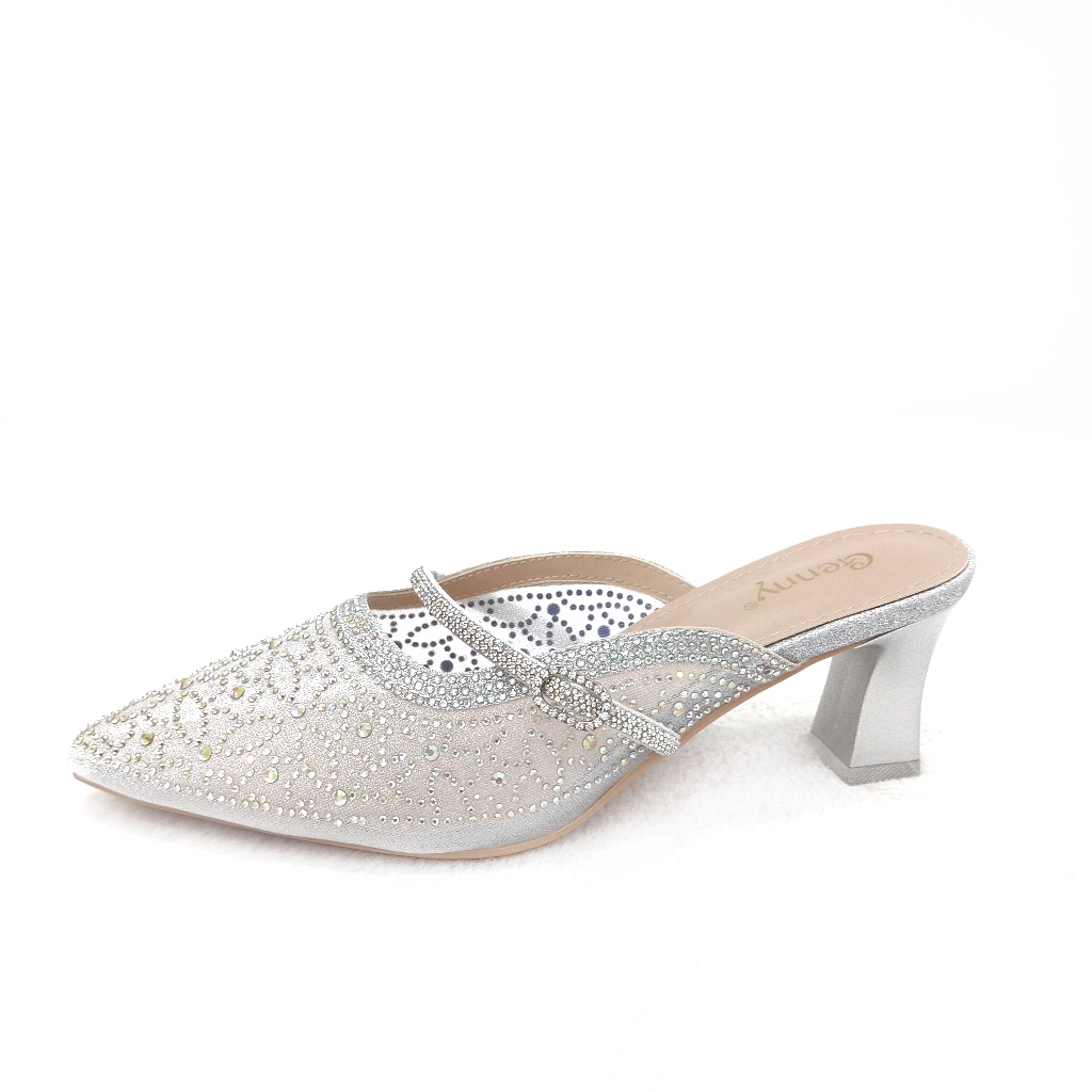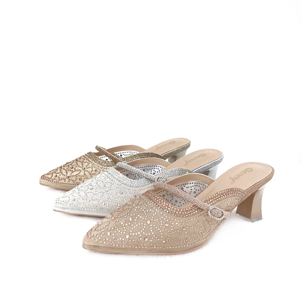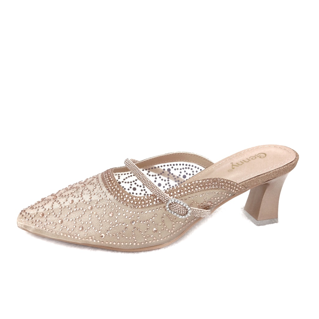 Sandal Pesta Wanita Tumit Tahu 5 CM Desain Elegan Nyaman Brukat Manik Manik L0285045
