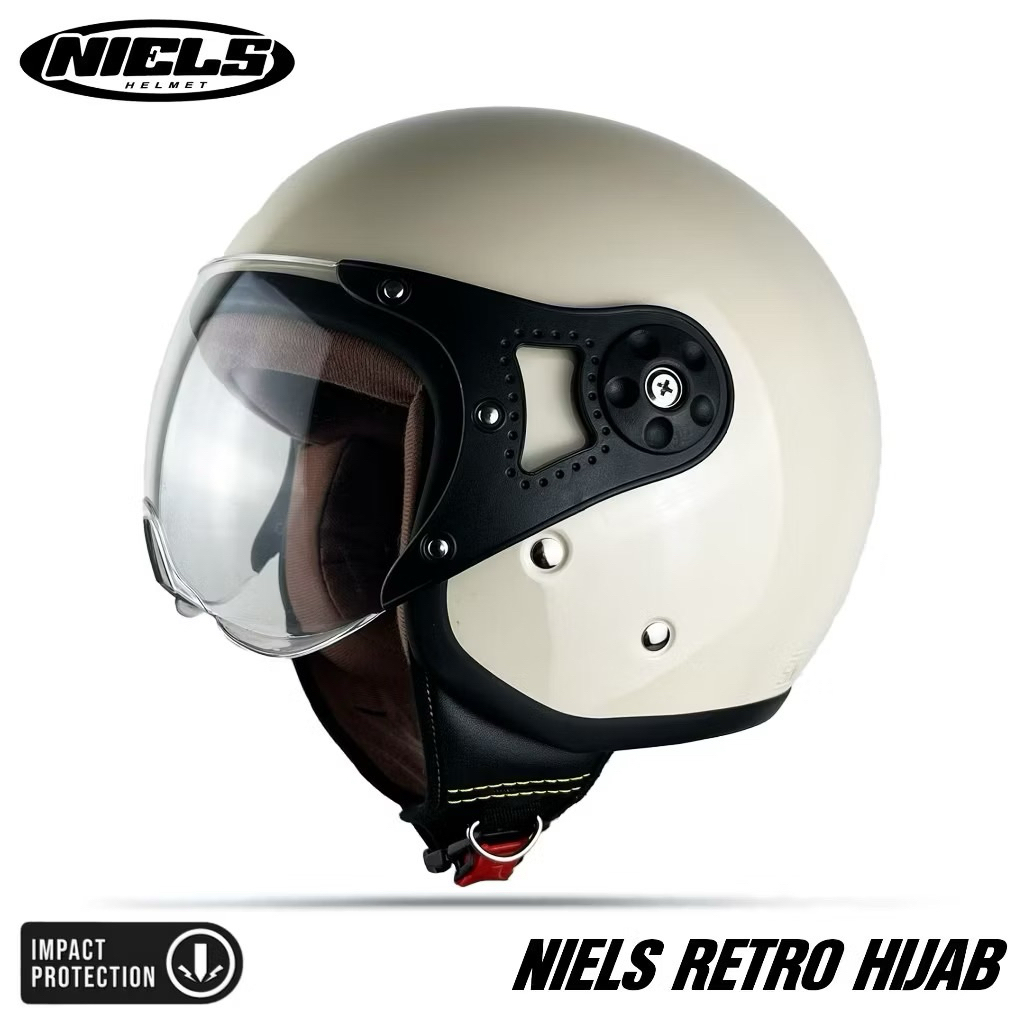 Helm Bogo Retro Hijab Niels Dewasa Kaca Pilot SNI Motorcyle Black Dof
