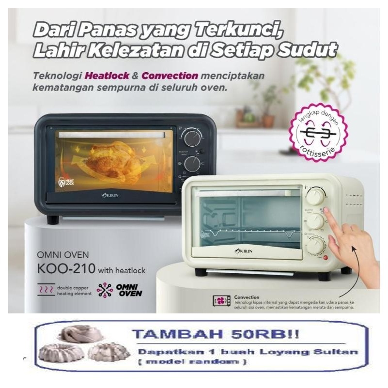 KIRIN Oven Omni 21 Liter KOO-210 With Heatlock KOO210 Daya 600 Watt KOO 210 Garansi Resmi