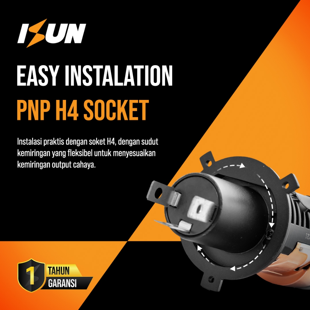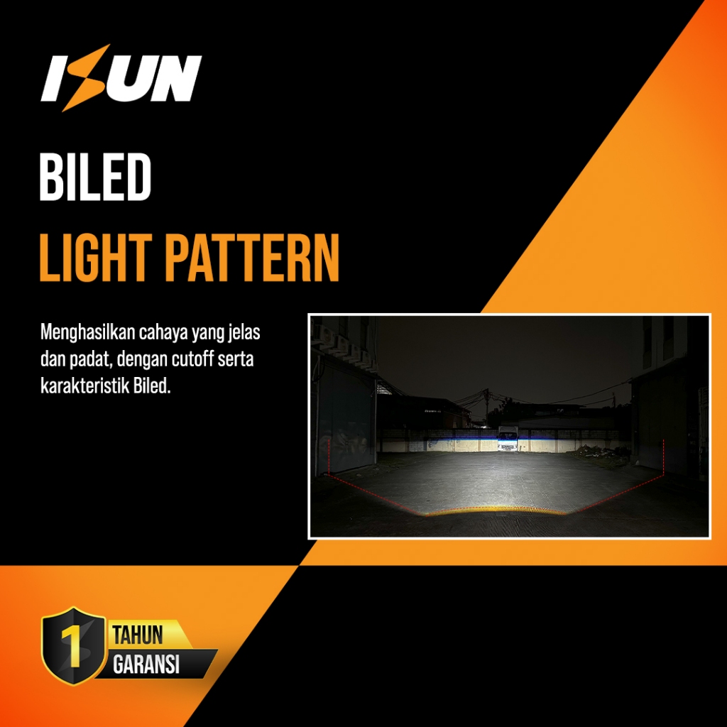 ISUN Lampu H4 Mini BILED MB55 Flat Cut Off dengan Double-Lens Laser dan Kipas Pendingin DC9-60V/50W