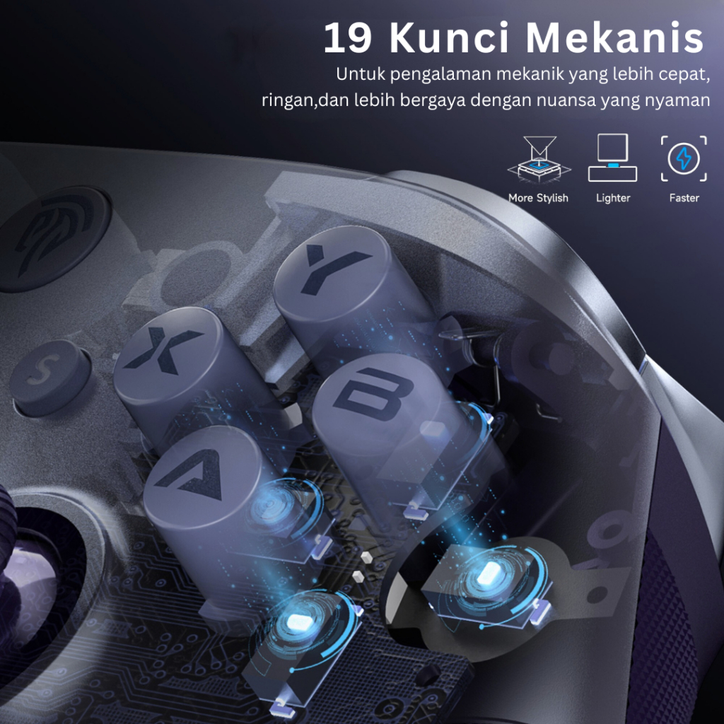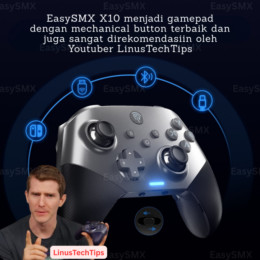 EasySMX [GARANSI 1 TAHUN] X10 Wireless Gamepad Mechanical Gaming Controller 1000mAh Baterai Hall Effect Joysticks Bluetooth for PC, Switch, TV, Phone, Magnetic Shell