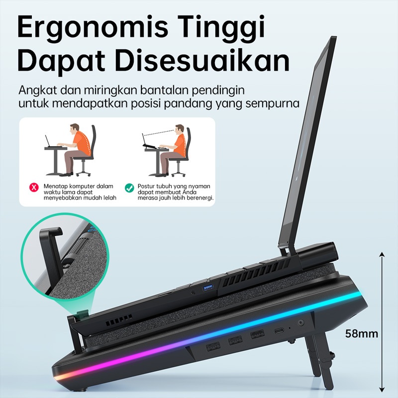 LLANO V12 Laptop Cooling Pad Gaming Laptop Cooler with 2400RPM turbo compressed air Adjustable Speed Touch Control LCD Screen for 15.6-19 inchCooler Laptop