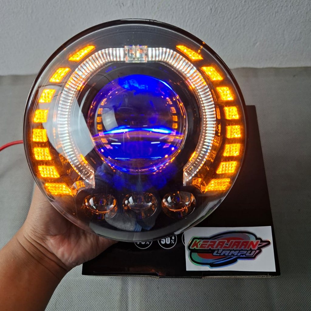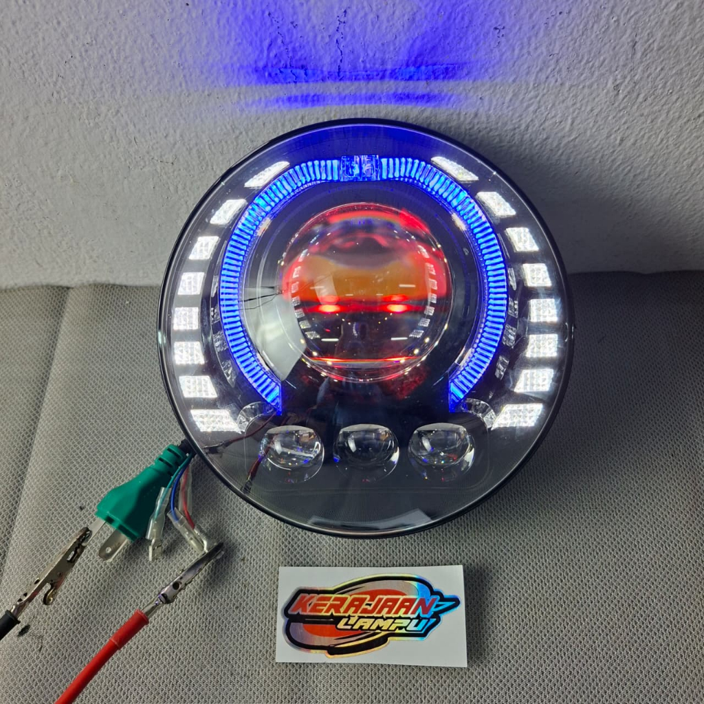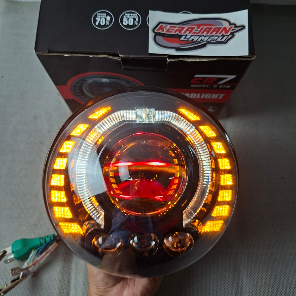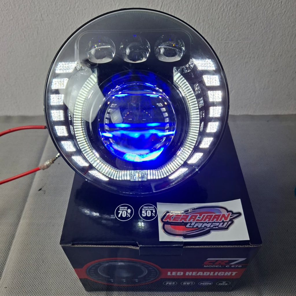 Headlamp Lampu Biled Projector CR7 Bulat 7 Inch 3 Mata Mobil Motor Ninja SS-CBVerza-Vixion-Rxking Universal Costum