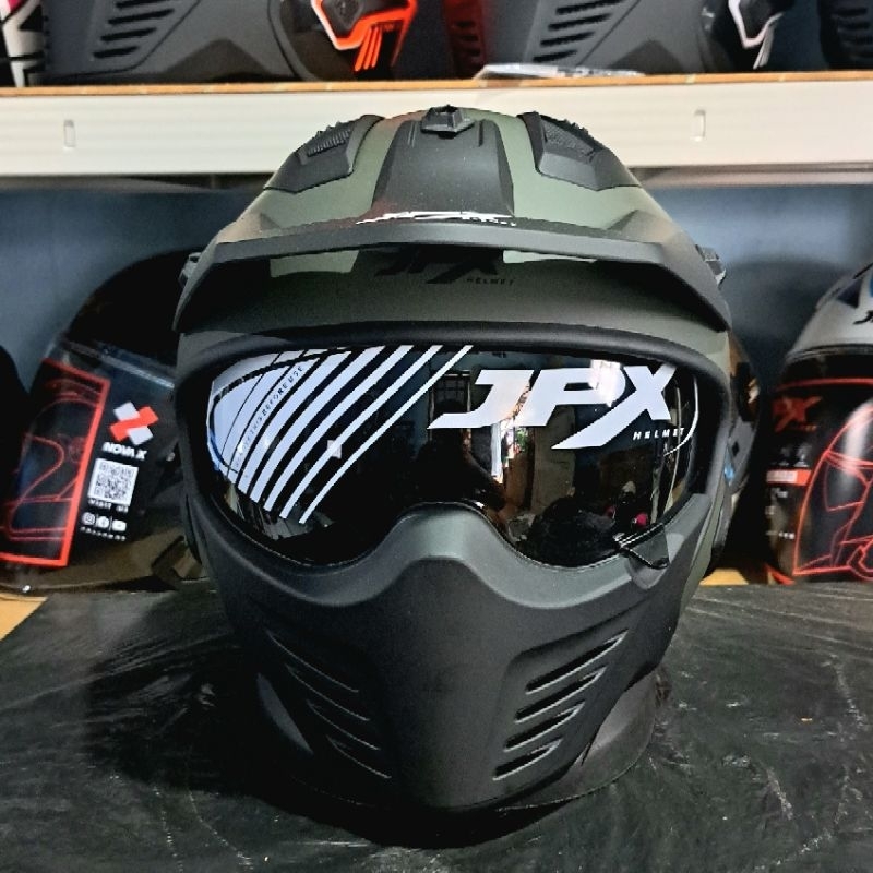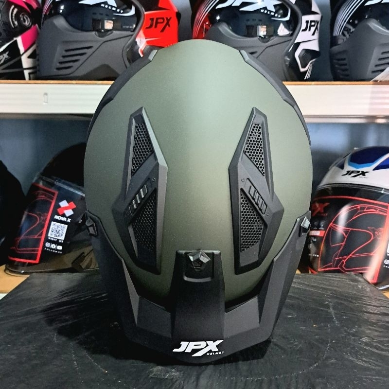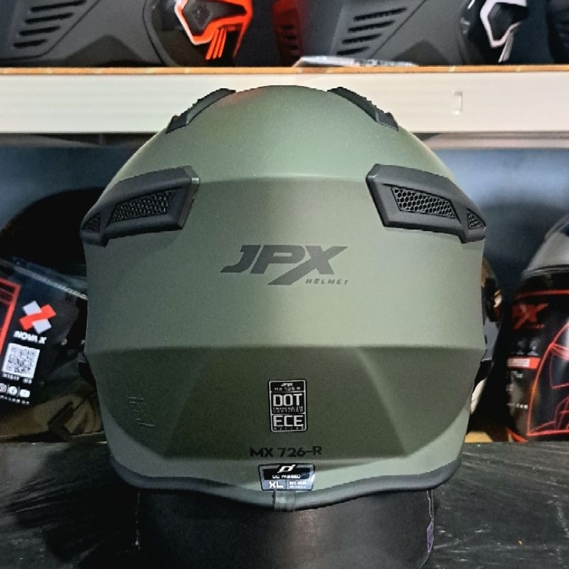 HELM JPX MX-726R SOLID GREEN ARMY FULL FACE ORIGINAL SNI DOT