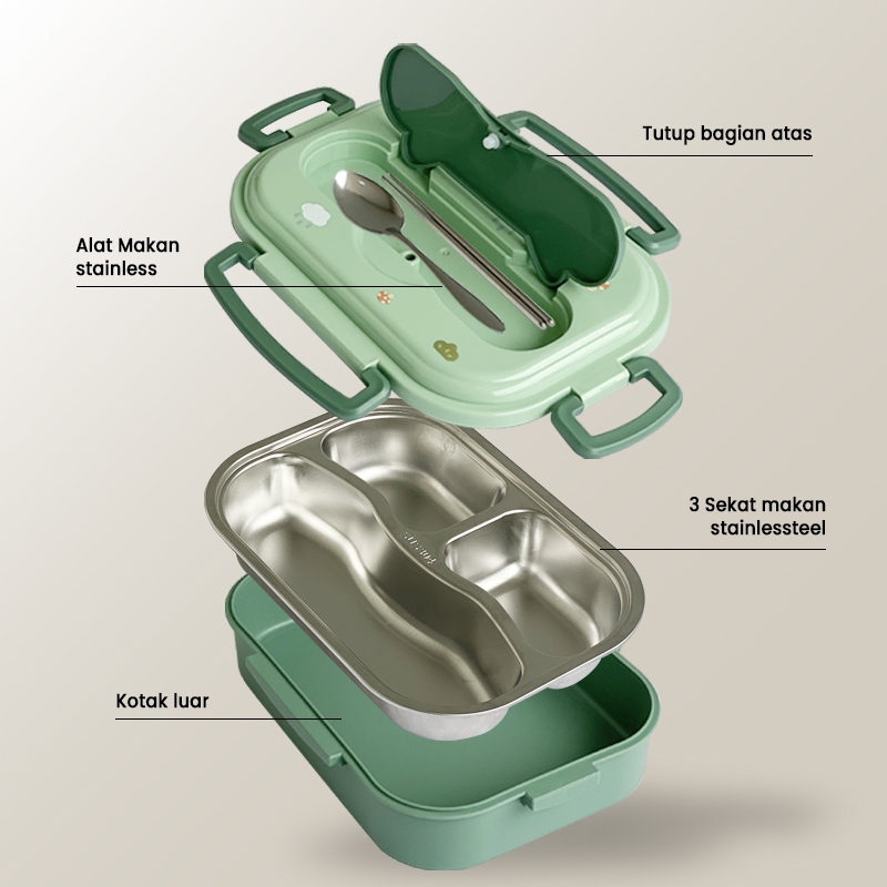 MYWARE Lunch Box Kotak Makan 3 Sekat 4 Sekat 5 Sekat Stainless / Lunch Box Stainless Stell Tahan Panas dan Anti Tumpah