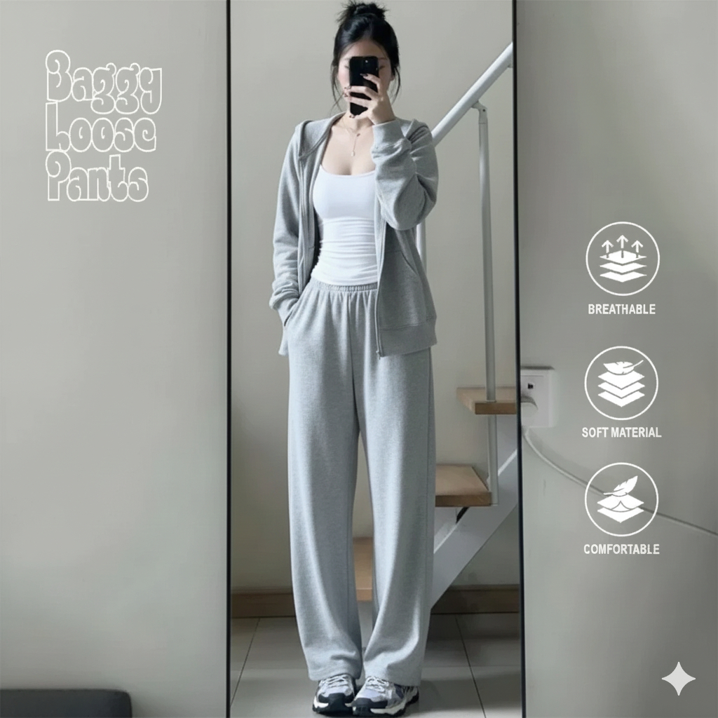 Sweatpants Loose Baggy Highwaist Training Unisex Korean Style Celana Panjang Daily Wanita Tebal Nyaman
