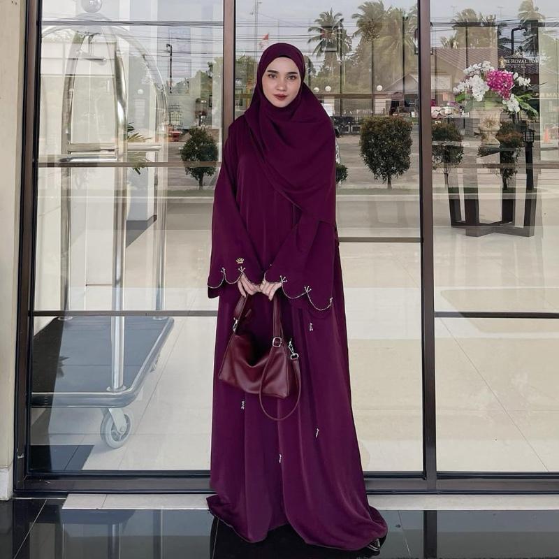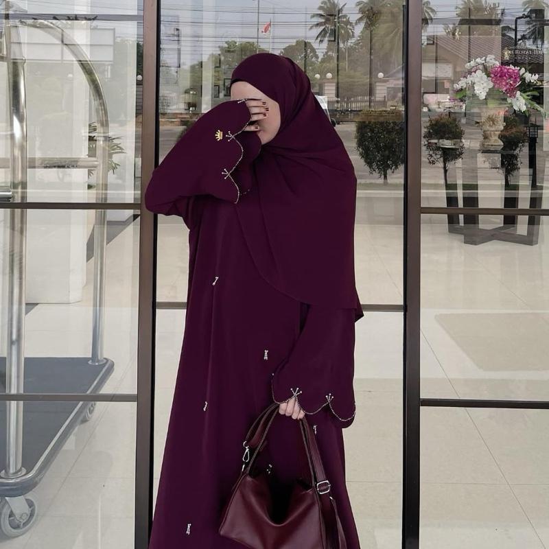 Yasmen Abaya Dress Bahan Marbela Anti Uv Aplikasi Payet Mutiara Abaya Umroh Anti Uv Simple Mewah Elegant