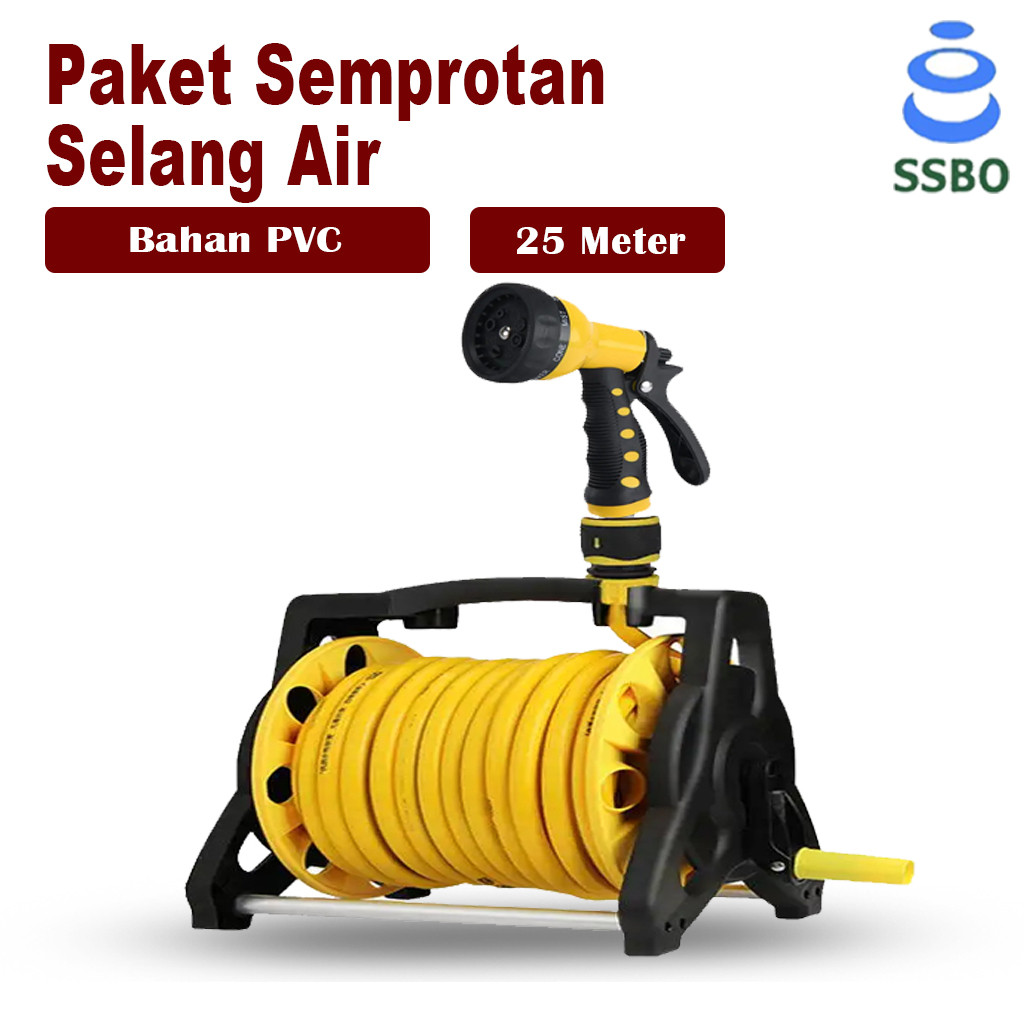 Ssbo Paket Semprotan Selang Air Gulung 25 Meter Kuning Jet Spray Taman Kebunan Alat Cuci Motor Mobil